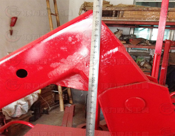 4.起吊重物前應(yīng)將卸荷閥擰緊,并根據(jù)重物的重量將小臂調(diào)定到相應(yīng)的工作位置,壓動操縱桿,重物徐徐吊起,直到所需高度,重物下降時,將泵體放油螺釘按逆時針方向微微放松,油缸卸荷,活塞桿即逐漸下降。下降速度過快將產(chǎn)生危險。起吊時吊臂下方嚴(yán)禁站人,避免發(fā)生事故。